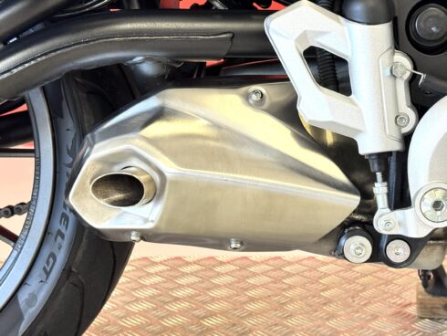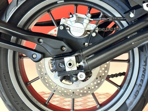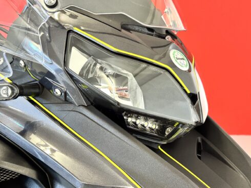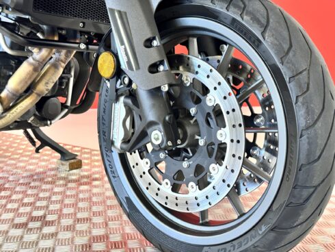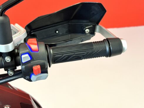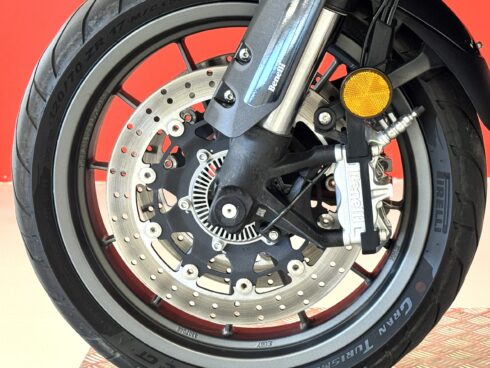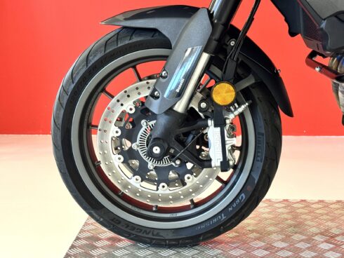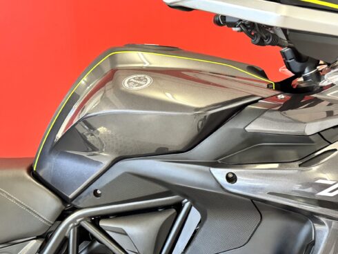- Frenata: Sistema frenante con doppio disco semi-flottante da 320 mm all’anteriore e pinze a quattro pistoncini, e disco singolo da 260 mm al posteriore, entrambi con ABS.