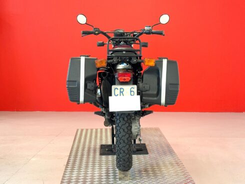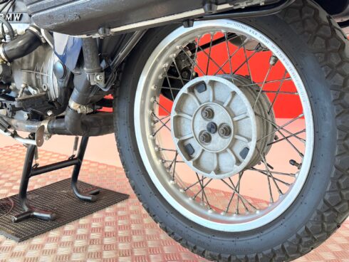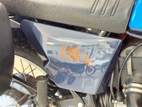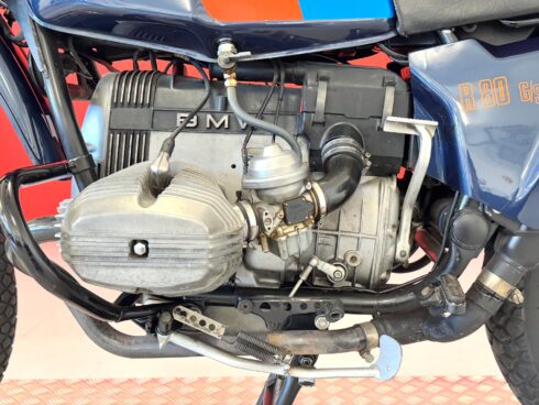 Meccanicamente molto simile alla versione stradale R 80/7, della quale monta l’unità a cilindri contrapposti boxer di 797cm³ che eroga 50cv a 6500 giri/min, ha nella ciclistica le più importanti innovazioni. Forcella anteriore a perno avanzato con ruota da 21″ e pneumatici off road (Metzeler enduro 1), disco con pinza Brembo e pastiglie sinterizzate e, soprattutto, forcellone monobraccio posteriore che integra al suo interno l’albero di trasmissione, come tradizione del marchio, cardanico. Ruota posteriore da 18″ montata a sbalzo, estremamente pratica in caso di foratura, e pneumatici tube type. Terminale di scarico unico, a sinistra, con grosso compensatore sotto al telaio.
