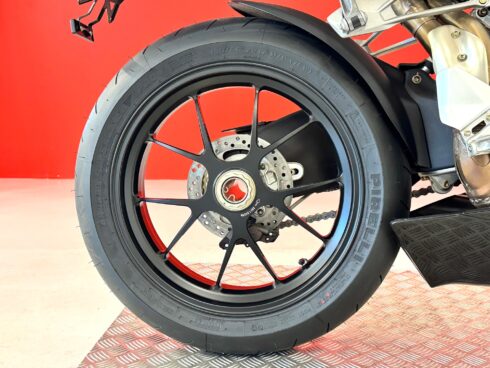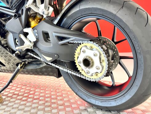 Record di potenza per questo quattro cilindri a valvole radiali accreditato di 183 cv a 12.400 giri con una coppia di 115 Nm a 10.000 giri. Valori raggiunti attraverso numerosi interventi che hanno interessato il motore più che altro volti a farlo respirare meglio. Nuove, infatti, sono le valvole di aspirazione in titanio che aumentano di un mm di diametro (da 29 a 30 mm) e adottano molle rinforzate.