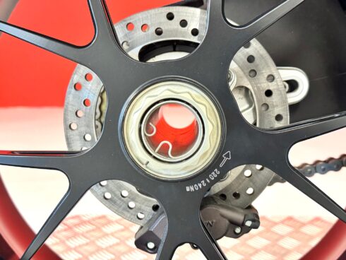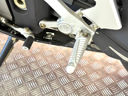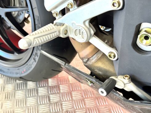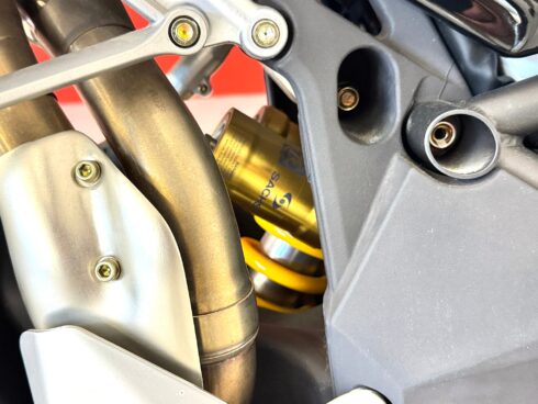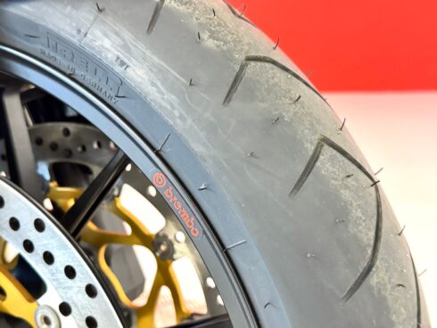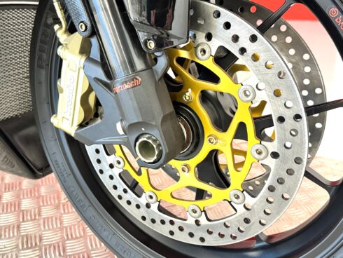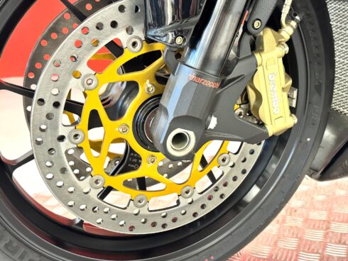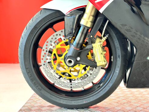 Le sospensioni sono state confermate, la Forcella Marzocchi RAC che ha steli da 50 mm trattati al TIN, e offre 13 possibilità di regolazione in compressione e 22 in estensione. Il monoammortizzatore Sachs prevede anche la doppia regolazione idraulica in compressione, ma offre anche la regolazione idraulica del precarico molla. Immancabili le ruote Brembo forgiate in alluminio con raggi a Y, leggerissime, con la mega sezione da 6 pollici al posteriore, per poter montare il gommone da 190/55 comunque già presente anche sulla R. L’impianto frenante completa la dotazione che Brembo ha assegnato alla R312, con dischi da 320 mm di diametro all’anteriore e pinze radiali P4/34 anche se la pompa resta di tipo convenzionale e non radiale come quelle montate ormai su tutte le moto della concorrenza.